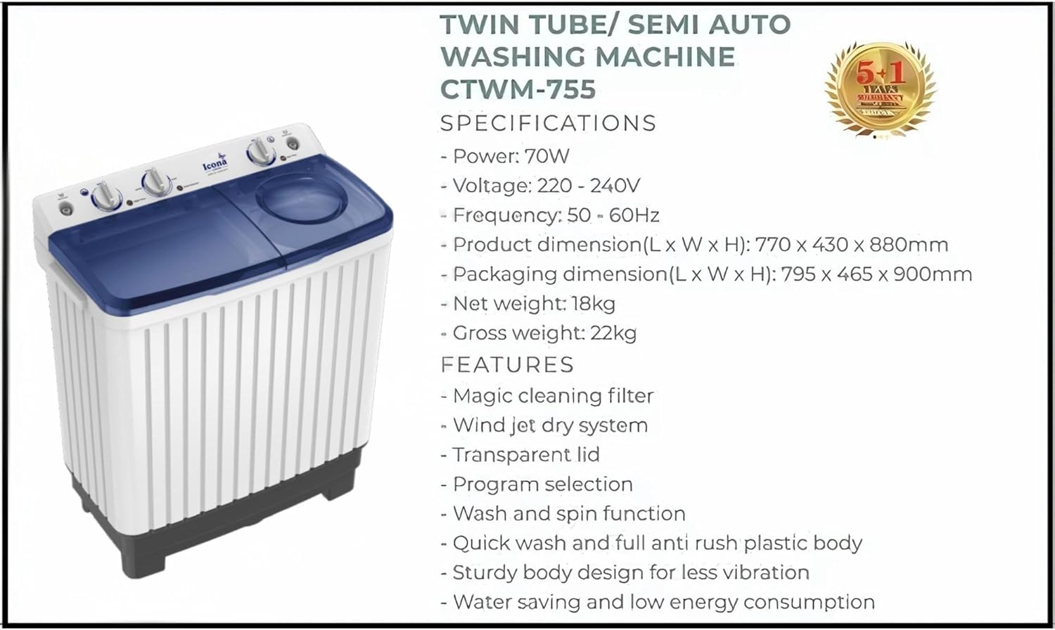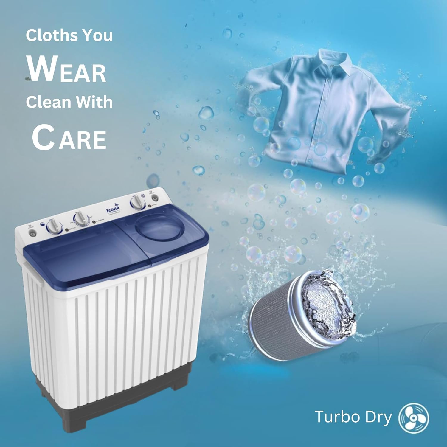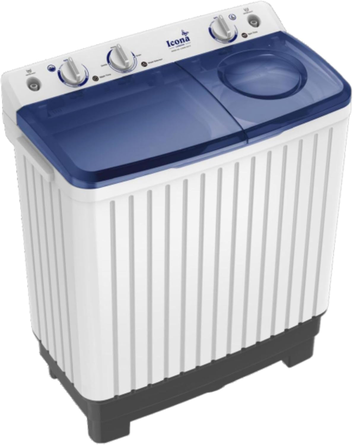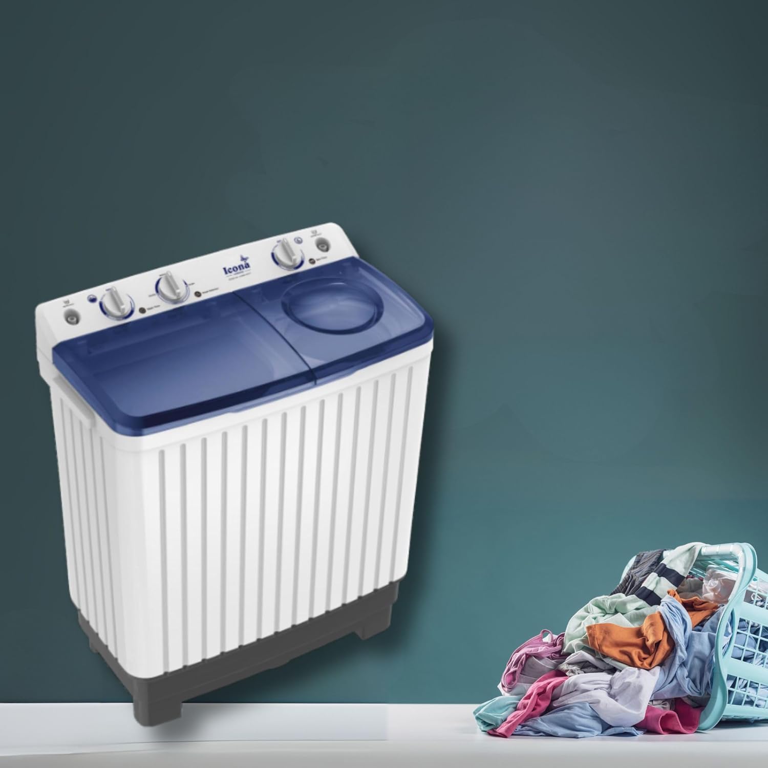 Icona 7 Kg Semi-Automatic Washing Machine – Twin Tub, Energy Efficient, Low Noise, Gentle Fabric Care, Durable Design – Model ILSWM-70HTT