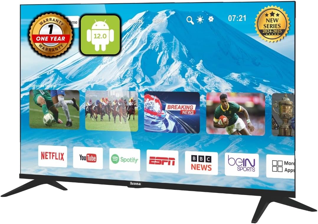 Icona London 32-Inch HD LED Smart TV – Android with WiFi, Miracast, HDMI, Netflix, YouTube, Prime Video, and USB Ports
